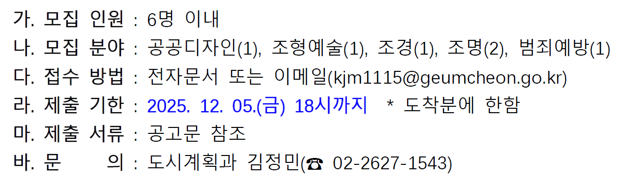 [~12/05] 금천구 공공디자인 진흥위원회 위원 공개모집 공고 안내