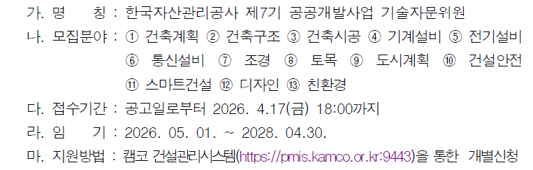 [~04/17] 한국자산관리공사「제7기 기술자문위원」공개모집 안내