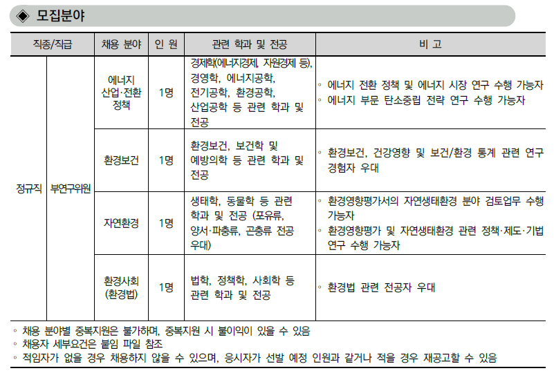 아래와 같이 [한국환경연구원 2026년 제1차 인력채용(연구직) 채용 공고] 안내 드립니다. 자세한 사항은 첨부파일을 참조하여 주시기 바랍니다.