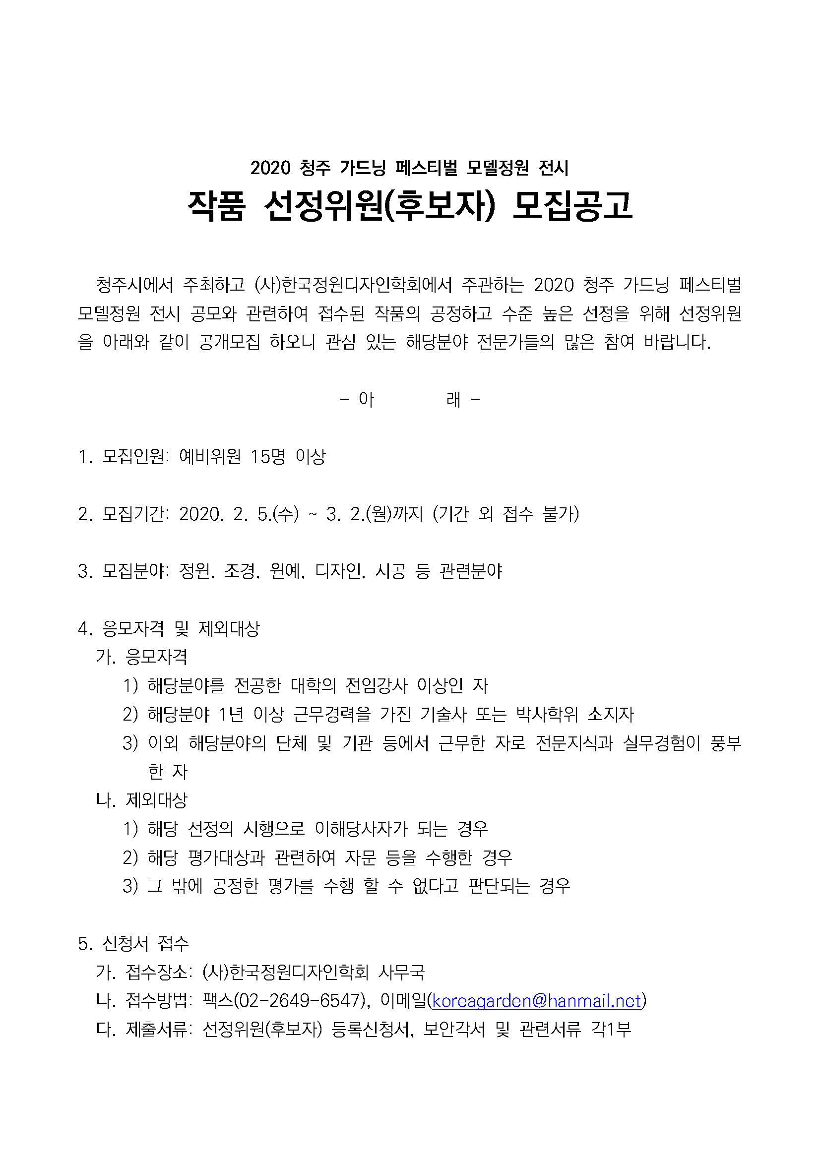 [위원모집 -03/02] 2020 청주 가드닝 페스티벌 작품 선정위원 공개모집