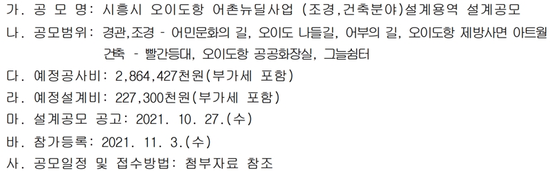 [홍보 ~11/03] 시흥시 오이도항 어촌뉴딜사업 (조경,건축분야) 설계용역 설계공모