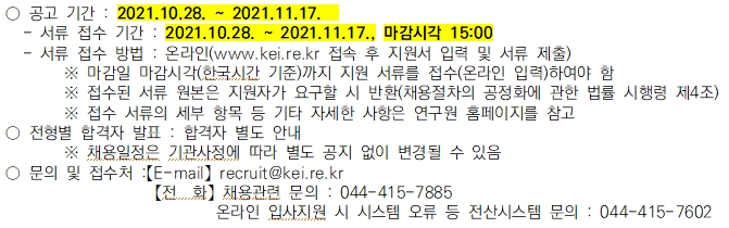 [채용공고 ~11/17] 한국환경정책평가연구원 2021년 하반기 인력채용(초빙연구원) 재공고