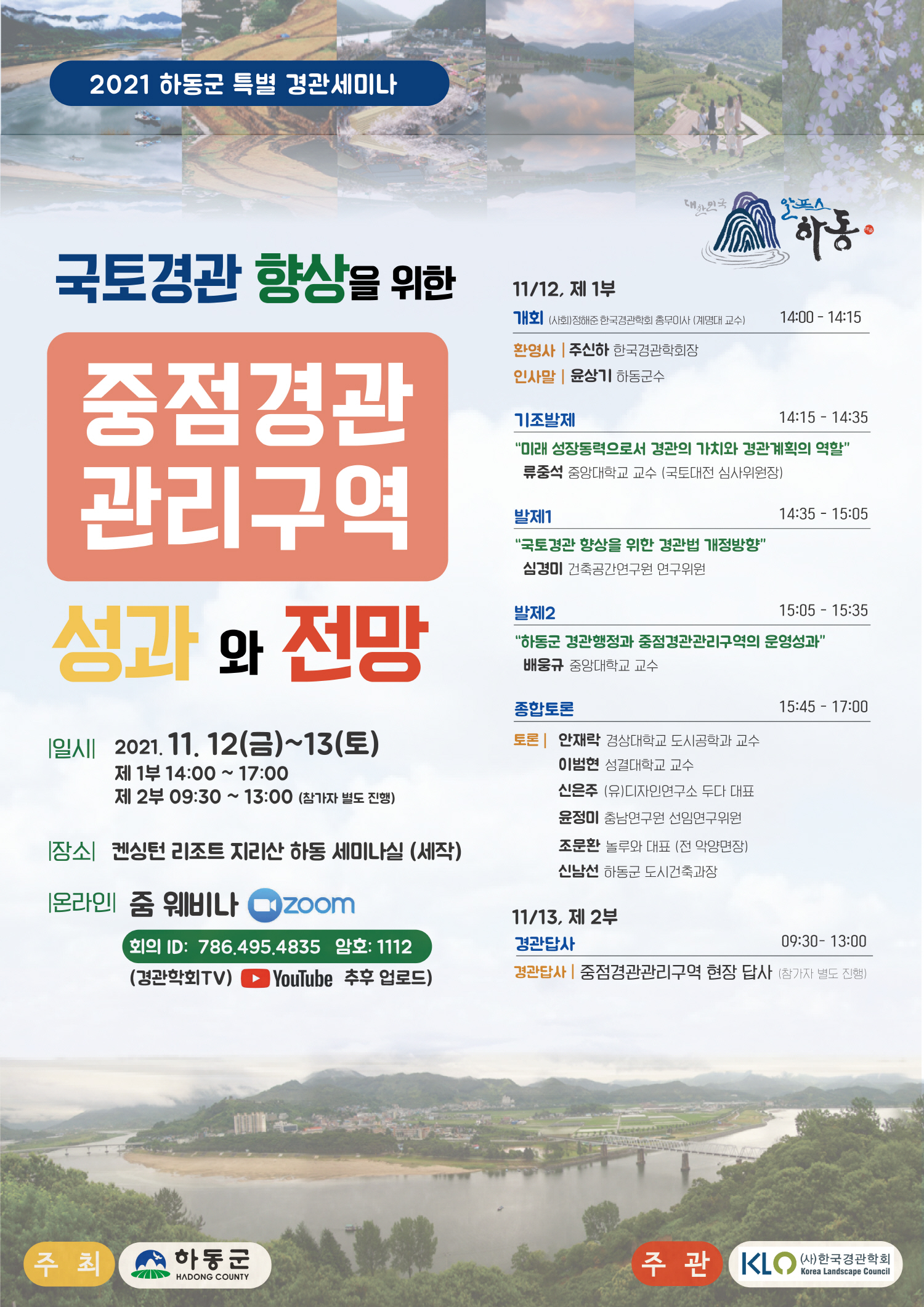 [홍보 ~11/13] 한국경관학회 '2021 하동군 특별 경관세미나' 안내