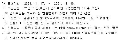 [위원모집 ~11/30]「곡성읍내 안전한 골목길 조성 용역」 제안서 평가위원(후보자) 공개 모집 공고