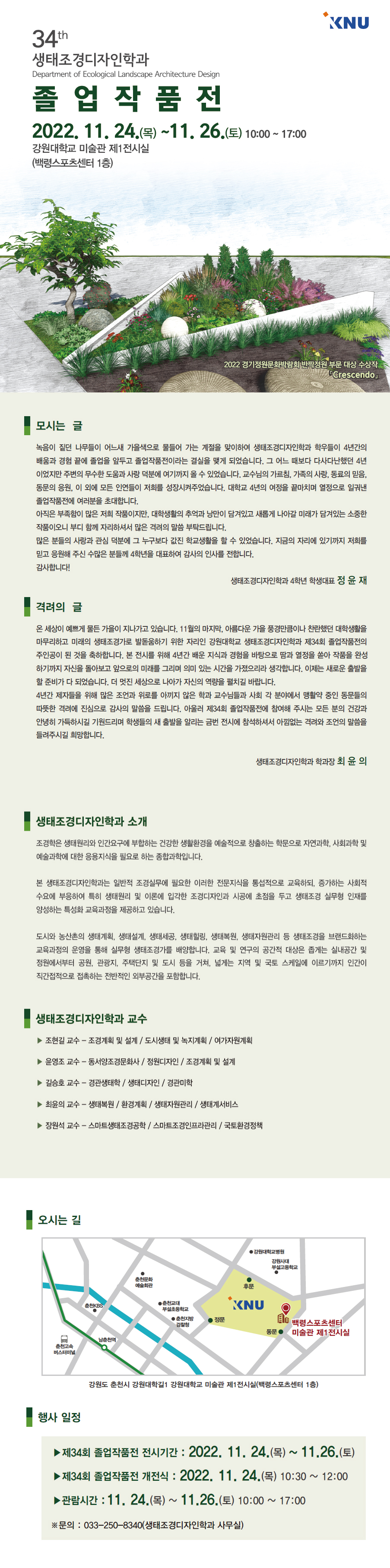 [홍보 ~11/26] 강원대학교 생태조경디자인학과 제 34회 졸업작품전
