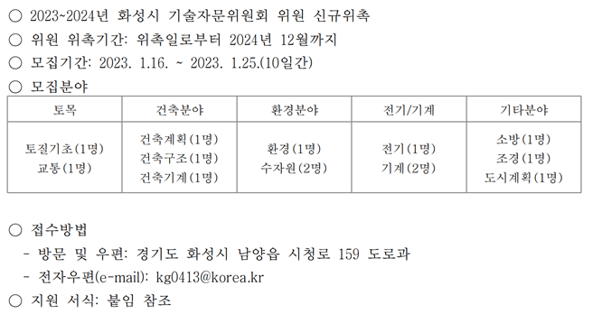 [위원추천 ~01/25] 화성시 기술자문위원회 위원 추천