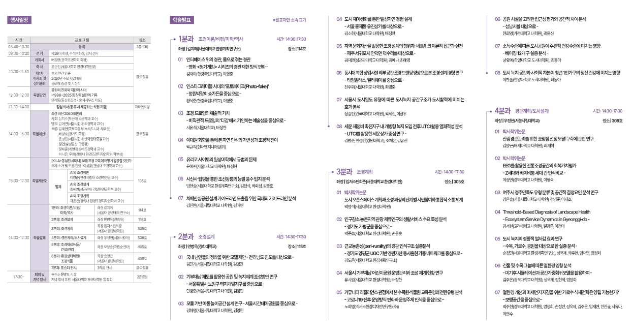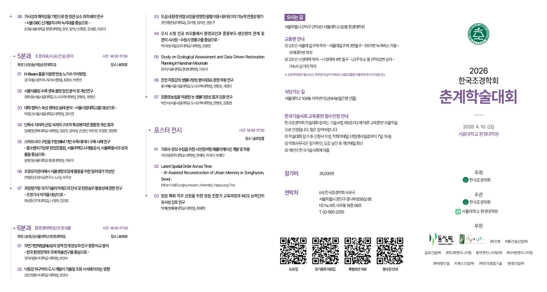 2026 (사)한국조경학회 정기총회 및 춘계학술대회 세부프로그램 및 등록 안내드립니다.