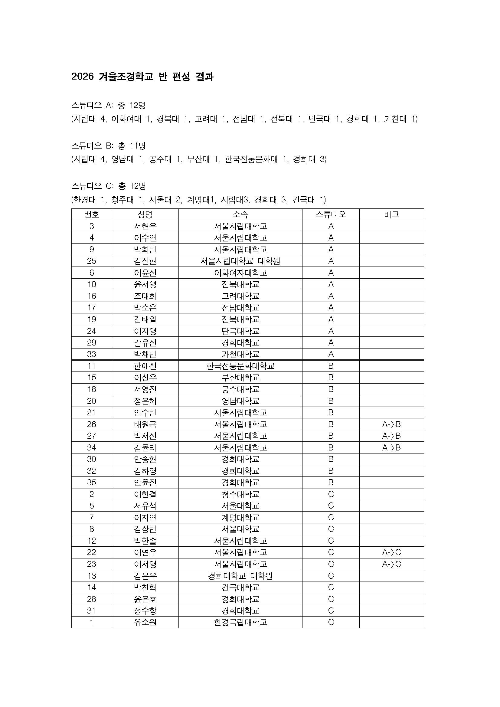 한국조경학회 2025 제30회 겨울조경학교 지원자 심사결과를 아래와 같이 발표합니다.